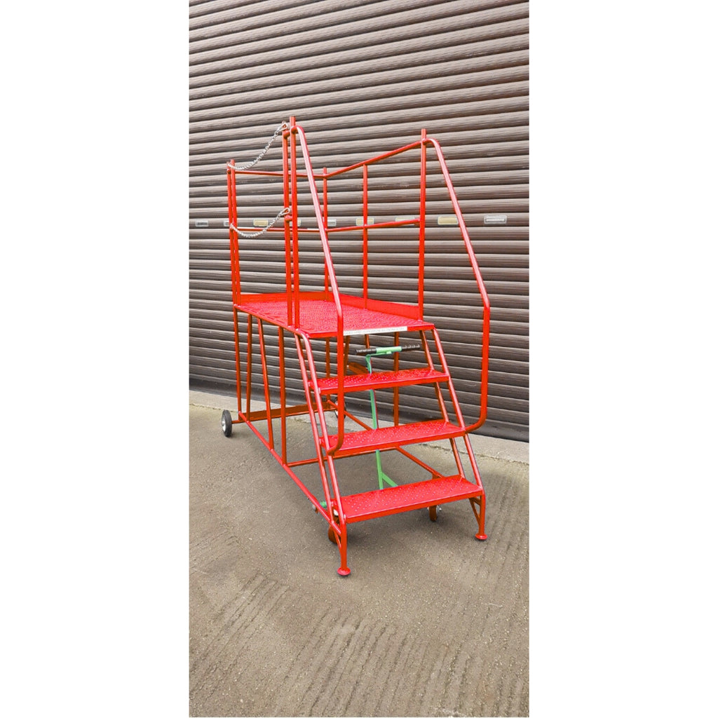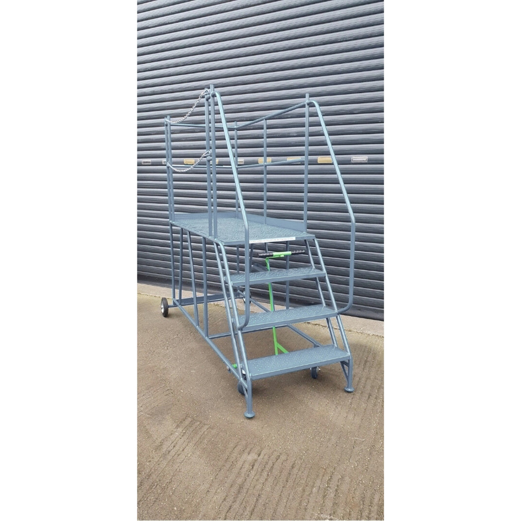 Mobile Warehouse Ladder with Access Platform – Left Hand Chain Exit (2–8 Treads)
