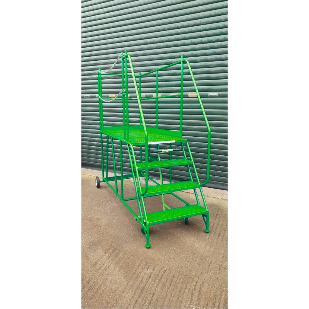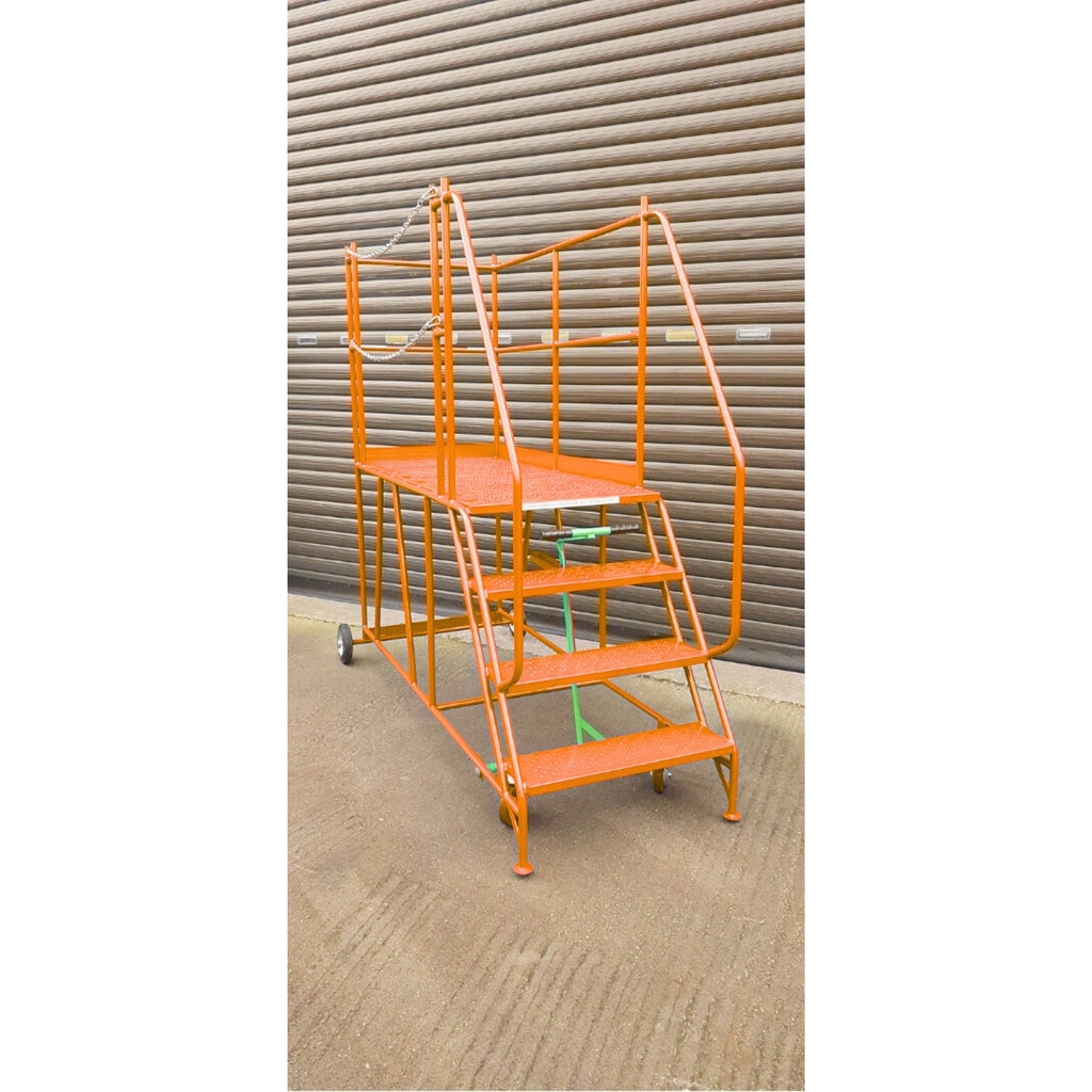 Manufactured for demanding warehouse and commercial environments, these mobile ladders feature a robust steel construction and a secure access platform for safe, comfortable working at height. The left-hand chain exit provides added protection at platform level, helping prevent accidental falls while allowing easy access when needed.